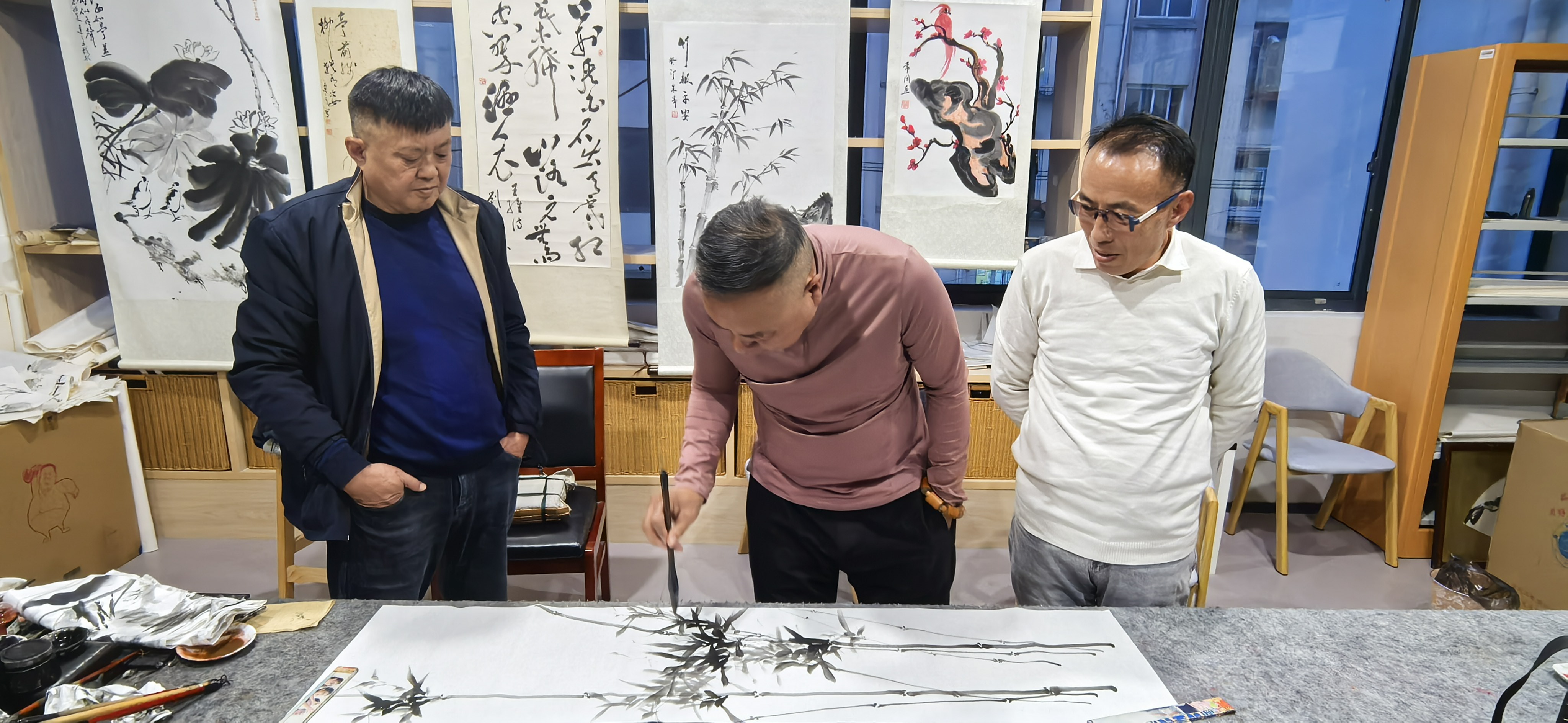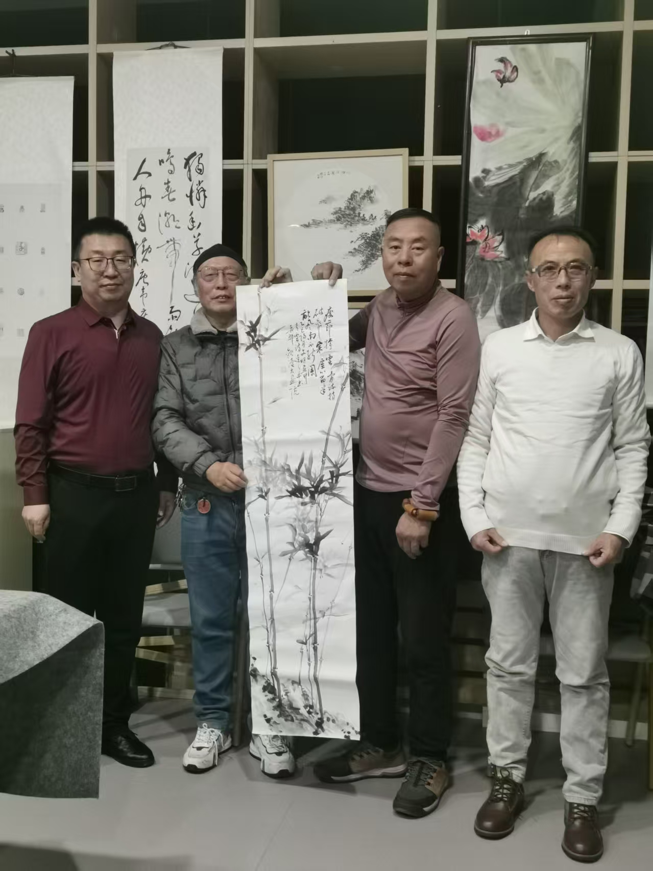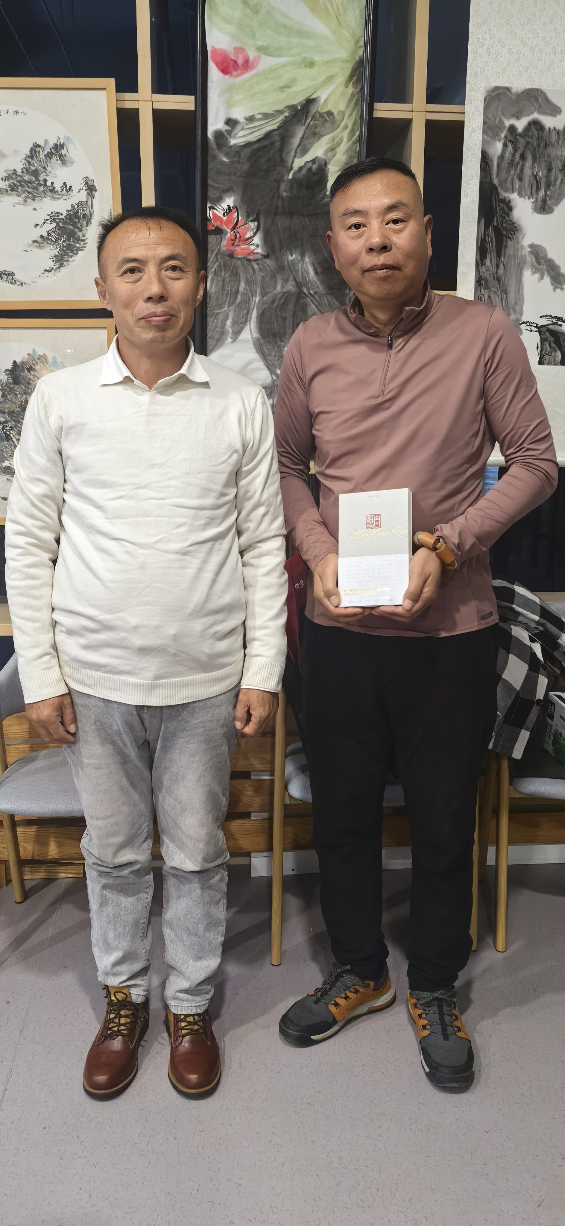 2025年孟冬二十三日,作家、《青云拾梦录》作者尤青云先生与“开平文化”创始人、作家、《白鲜肉》的作者陈开平先生应苏州观读书画苑的邀请做客姑苏。在此期间该书画苑的书画艺术家刘达之先生、冯耀德先生、谢文明先生、盛以祥先生进行了广泛的艺术交流,并相互赠送了各自的艺术作品,尺八艺术家谢文明先生现场热情演奏了尺八艺术,讲解了尺八这一古老传统乐器的工艺制作及它的前世今生。