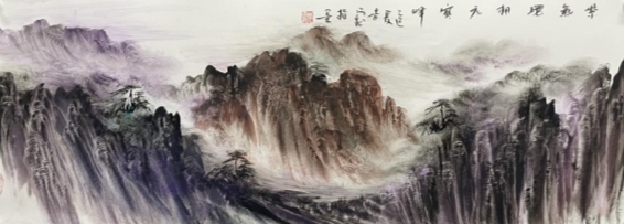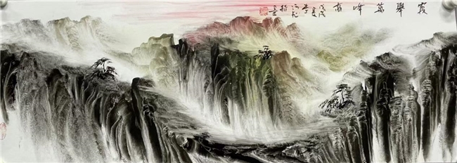 意境上,其指掌山水以“师法自然、法宗汉唐、中西合璧”为追求,将指墨从二维空间拓展至二维立体空间,色彩更富自然意趣,山水更具体量感与厚重空间层次,将指墨山水推向全新革新边界。指墨书法领域,他精通真草隶篆诸体,达成“力透纸背而意态自足”的艺术效果,被誉为当代“指书第一人”;2012年在人民大会堂现场指书《沁园春·雪》长卷引发轰动,印证了其技法体系的成熟度与学术认可度。