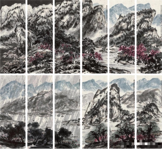 崔如琢 指墨山水《十二条屏》