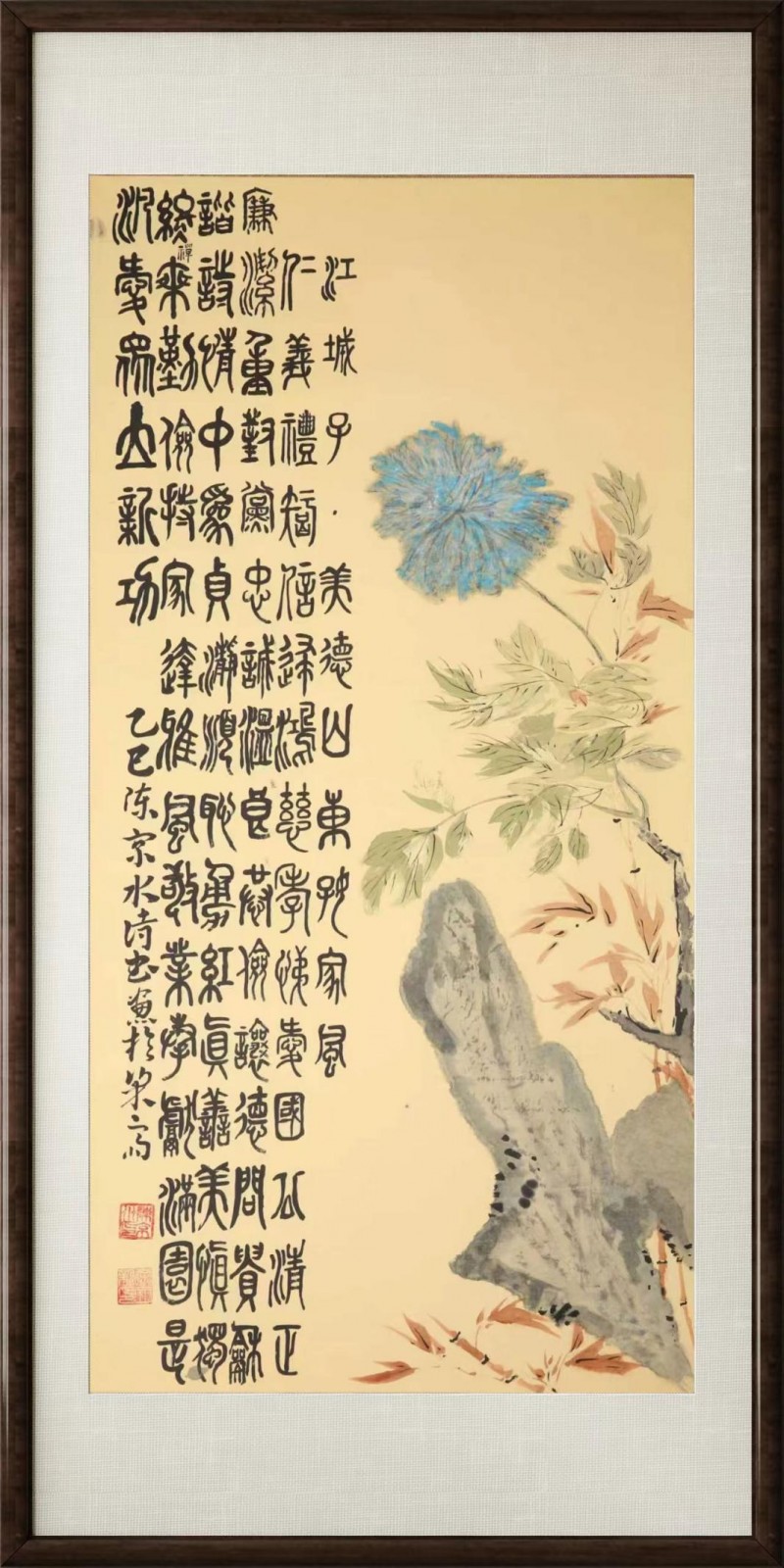近年来,书画作品力求诗书画的完美统一又具时代精神。力求做到与党同心,与国