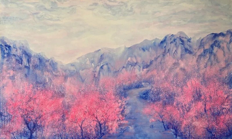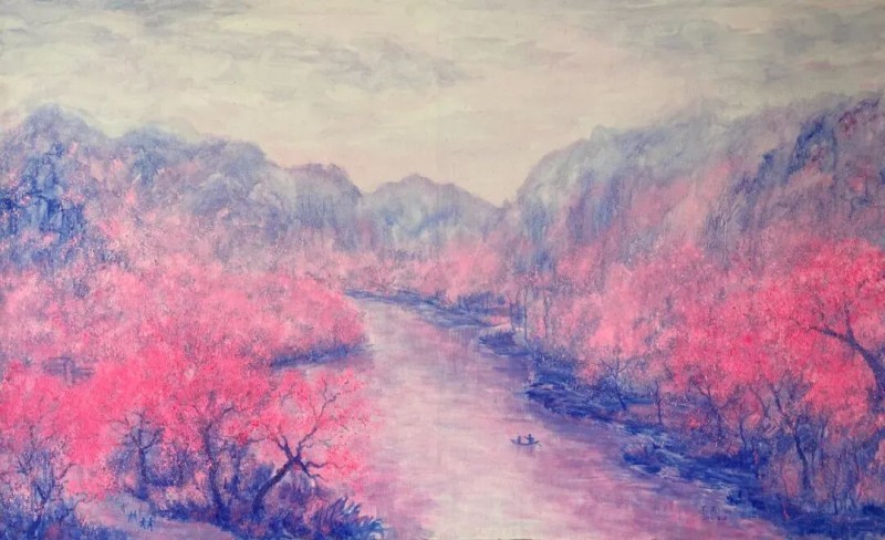 《青花釉里红系列—桃源深处有人家》(140cmx85cm)油画作品