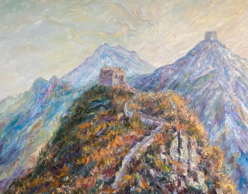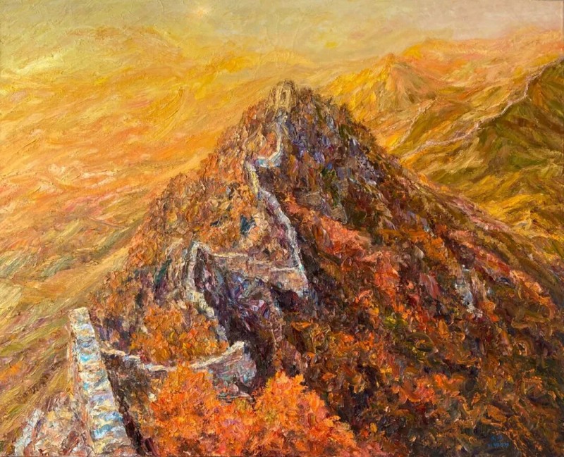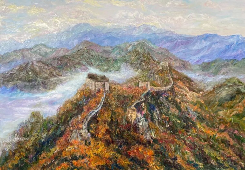 《青花釉里红系列—层林尽染万山红》 (140cmx85cm) 油画作品