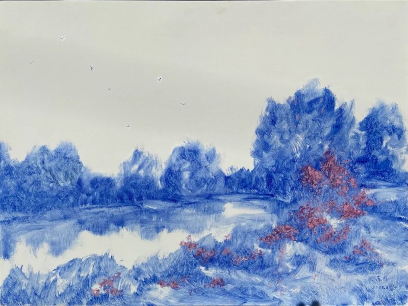 《额尔齐斯河风光之二"青花釉里红"》(60 cm X 80 cm) 油画作品