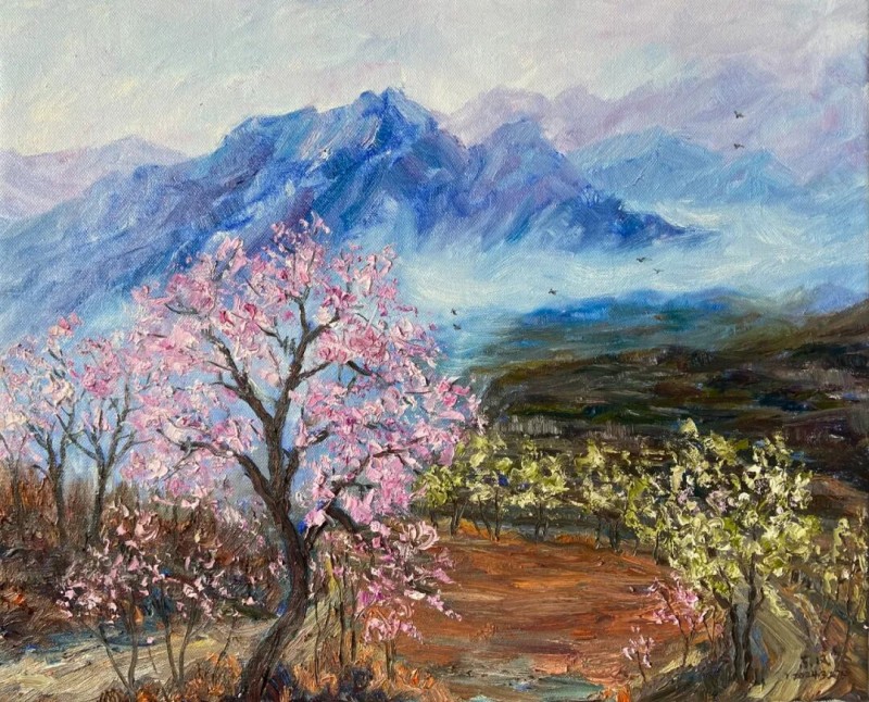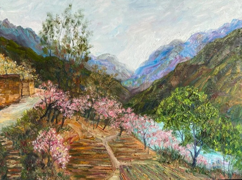 《皮亚勒玛乡的石榴园》(60 cm x 80) 油画作品