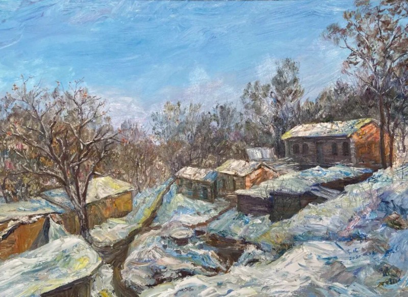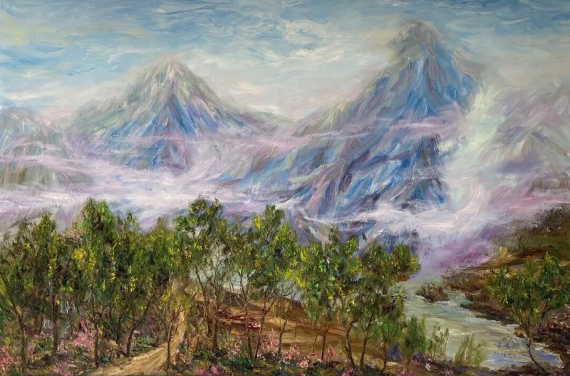 《雪山脚下》(65 cm x 90 cm) 油画作品