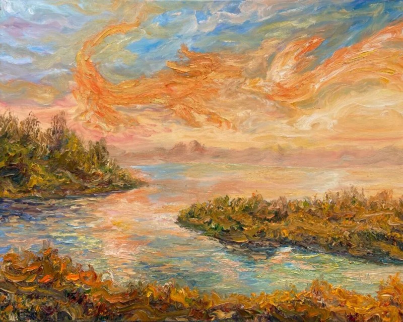 《额尔齐斯河风光之三"天地之水"》(60 cm X 80 cm) 油画作品