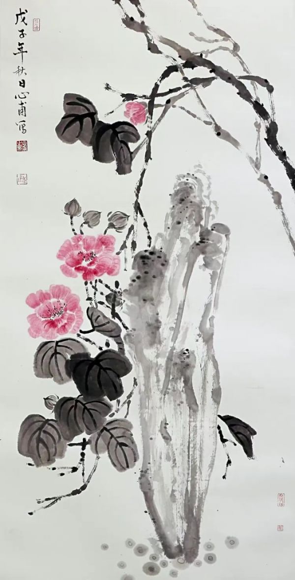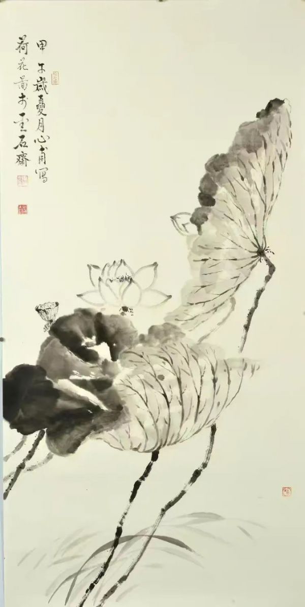 他以书入画,擅山水、花卉、工金鱼,兼重书法与章法布局,在“形神俱妙”中探求笔墨的至简与至深。他提倡艺术家要有“淡泊明志、甘于寂寞”的境界,强调深入自然、深入生活,以真实为根、才能创造真正有生命、有温度的艺术语言。正因如此,他的作品总是带着一种静穆之美,不炫技、不迎合,却动人于无声之间。