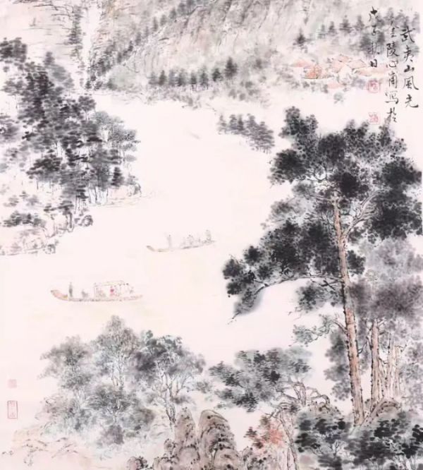 龚老尤重书法修为,提出“无楷不成行,无书不成画”的理念。他强调行楷书法在中国画中的基础作用,认为书法功底直接影响画面的精神气质。他曾言:“历代传世画作,皆以书法定品格。若无楷书根基,其画即便技巧繁缛,也难臻格韵之美。”他自己的题款,多以行楷为主,端庄而灵动。龚心甫的画作,既有中国画的古意,又有当代语境的气度。他不为声名所动,却以实绩铸就了自己在当代中国画坛的独特地位。年龄近九十岁的龚心甫,依然每日笔耕不辍。他不在展馆喧哗处,不在名利风口上,而是在墨香与素纸之间,书写着中国画的精髓,对他而言,艺术不仅仅是图像的表达,更是中国文化的传承与担当。在龚心甫的著作中,关于中国画创新问题,他说:“中国画创新不是一朝一夕就能创出来的,首先要有淡泊明志,不求名利,甘于寂寞的精神,甚至要甘于寂寞一辈子的思想。创立新风格的出现是‘渐变’,而非‘突变’,只有长时间的文化积淀和艺术磨砺,才有可能得到点点滴滴的收获。深入自然、深入生活,仔细观察研究物态的细部结构,兼收各种艺术营养,才有可能找到新的表现手法”。