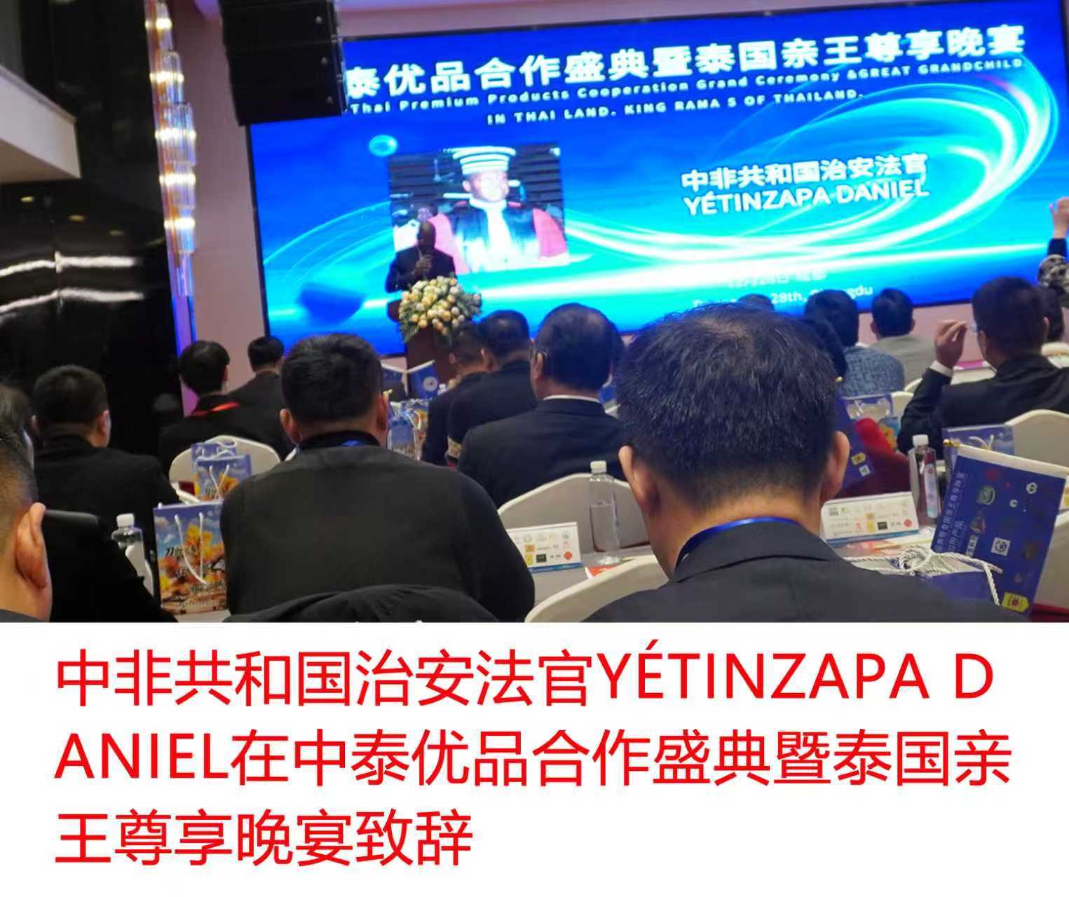 2025 年 12 月 28 日,泰国皇室亲王布拉沃查特·查猜殿下携王妃、泰国国际投资促进会主席贝恩博士、中非共和国治安法官YÉTINZAPA DANIEL.等重磅贵宾亲临中国四川成都,在天府新区的一处高端私密会所内,主持一场旨在缔结深厚友谊与深度认可的小范围高端专享活动——“中泰优品合作盛典暨泰国亲王尊享晚宴” 盛会。此次盛典由中泰双方联合举办。