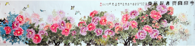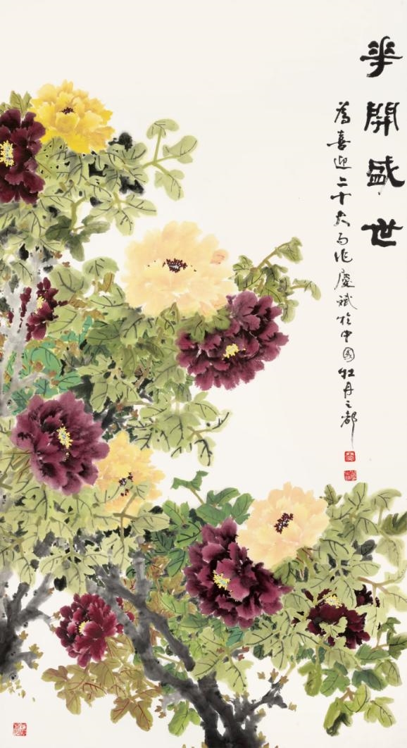 樊庆斌以泼彩破墨再释牡丹意象,把宋元法度与时代气象熔于一炉,其笔底富贵已非花鸟之姿,而是华夏文化自信的丹青宣言。”