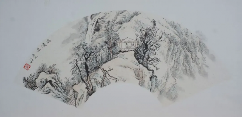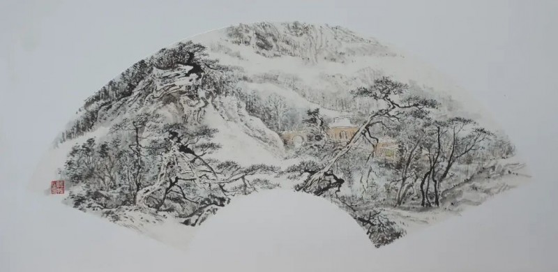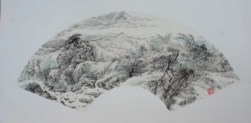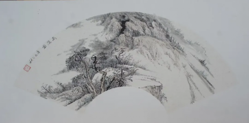 《山水》卡纸宣纸扇面 33X66cm 2021年