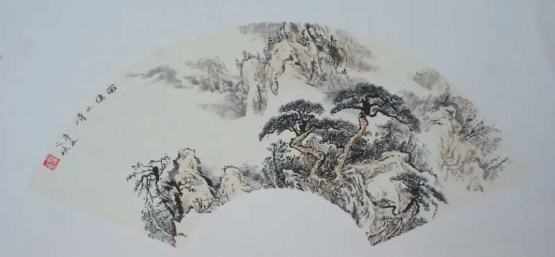 《雨后山清》卡纸宣纸扇面 33X66cm 2021年