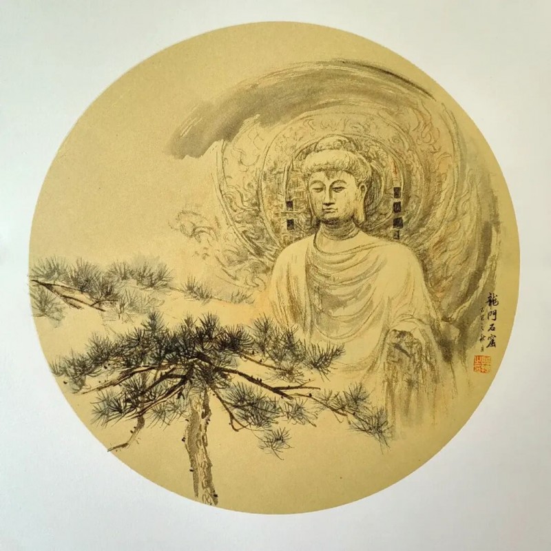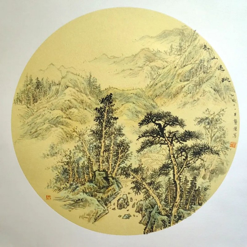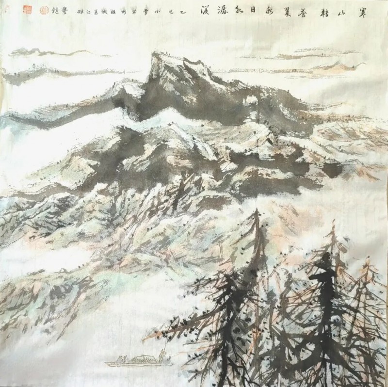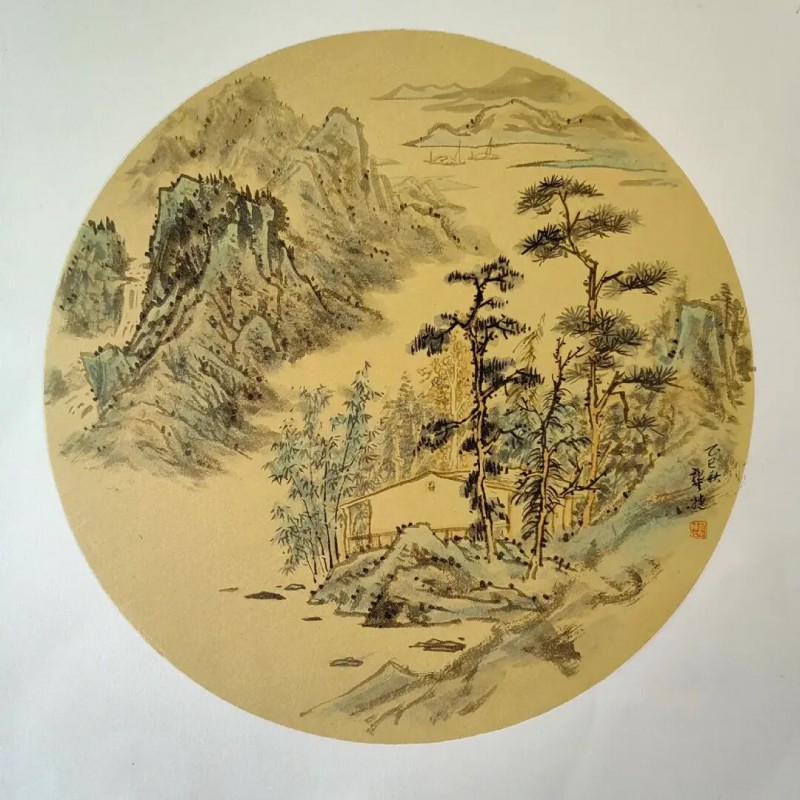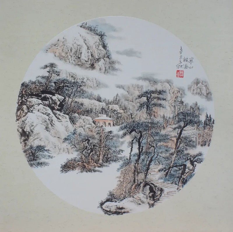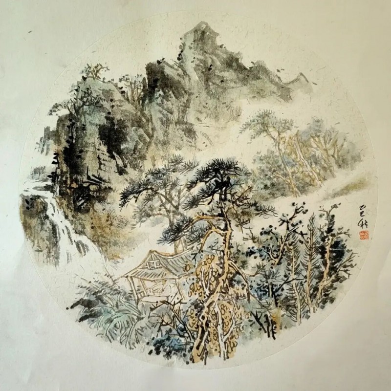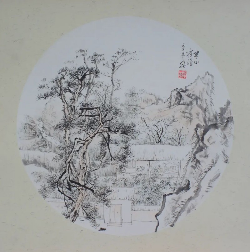 《寒山听涛》卡纸宣纸镜面 50X50cm 2021年