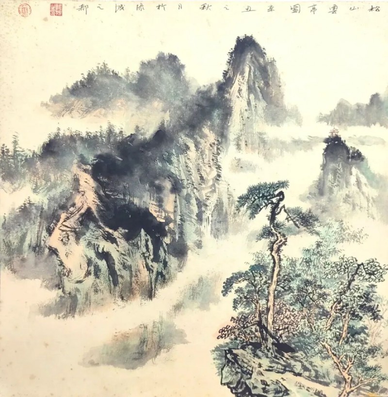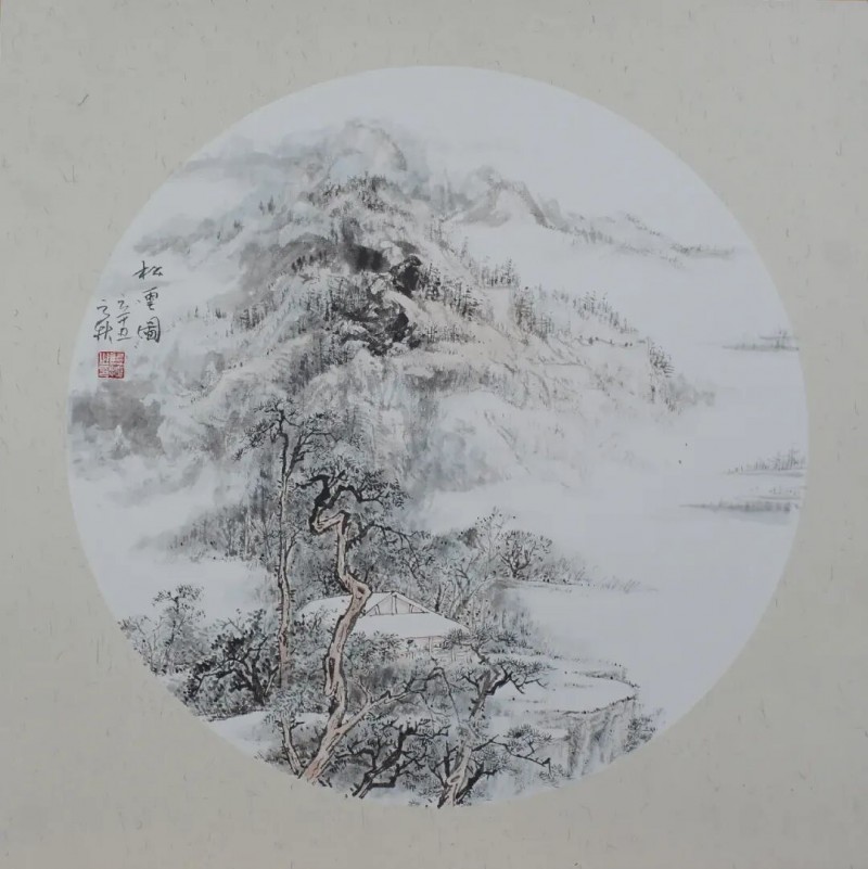 《松云图》卡纸宣纸 镜面 50X50cm 2021年