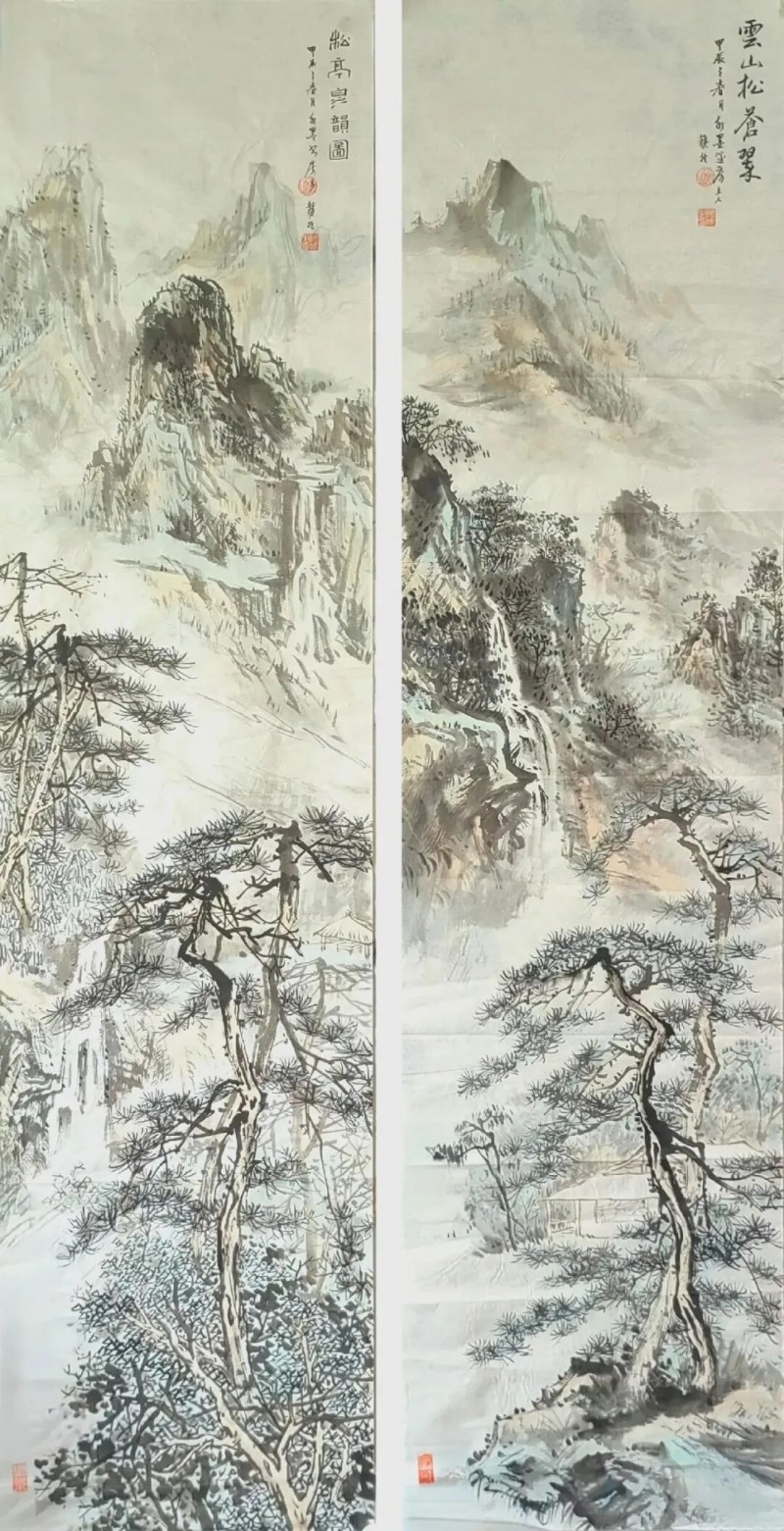 《松亭泉韵图》《云山松苍翠》138X69CM 2024年