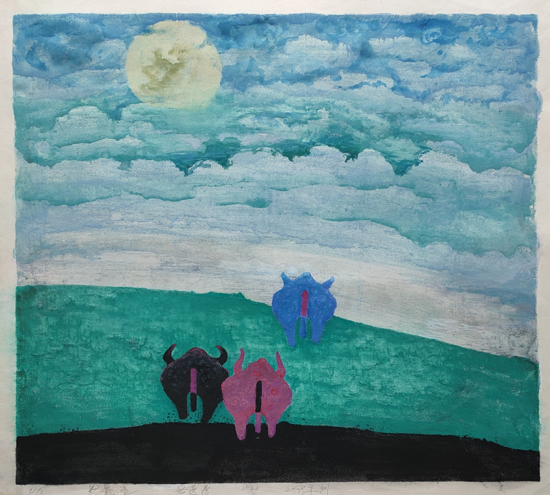 从大足的石刻文脉到攀枝花的工业诗篇,曹向东的创作始终紧跟时代步伐。他的作品题材日益多元,既有《竹乡》《闹春》这样饱含乡土情怀的佳作,也有《纳西・披星戴月》《气节・民族的脸面》这类承载文化内涵与民族精神的精品。1991 年,《纳西・披星戴月》入选纪念中国新兴版画运动 60 周年当代版画新作展,在日本东京、大阪等五城市巡展,让东方版画艺术在国际舞台绽放光彩;《气节・民族的脸面》先后入选建党 70 周年美术展、长征胜利 60 周年美术展,以凝练的艺术语言诠释了民族精神的内核。多年来,他的作品不仅频繁亮相重庆、四川等地的重要展览,更被多家专业机构及收藏家珍藏,成为记录时代、传承文化的艺术瑰宝。