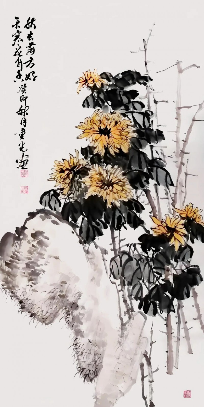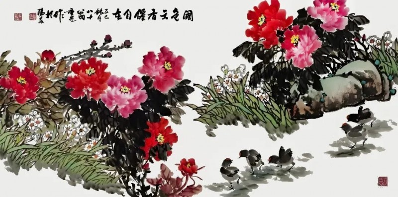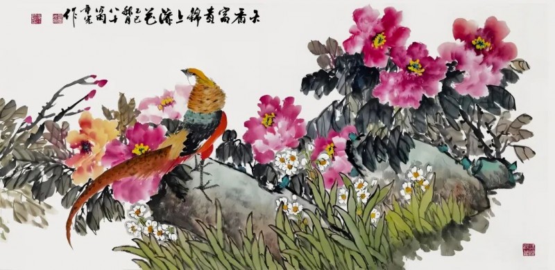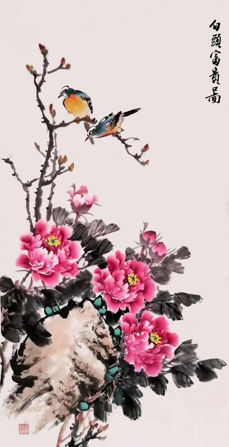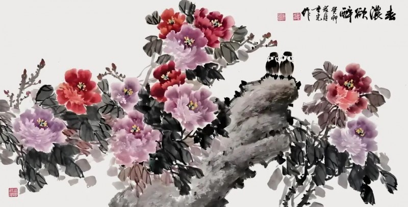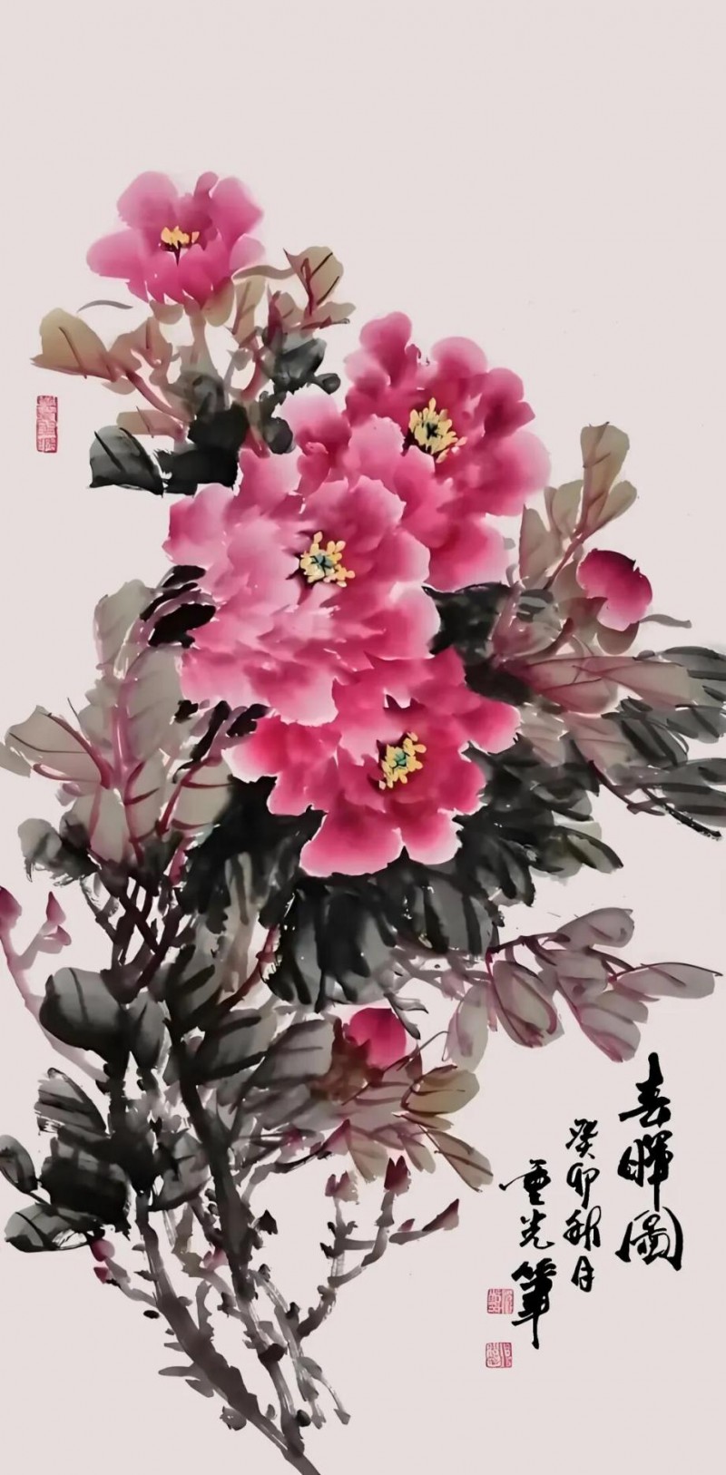画为媒,当我们都离开这片山河,当我俩分别回到北京和宜兴的时候,当我俩过了甲子之后,我在上海的一个笔会后驱车赶赴宜兴,参加一个荒友的画展。沈重光的名字闯入我的脑海,沈重光的画作映入了我的眼帘…。几十幅中国画让我听到和嗅到了鸟语花香,让我看到了太湖畔上的色彩斑斓,闻到江南秀色扑面而来的春风里,竟然传来一股股北大荒金达莱的香甜。沈重光的花鸟神韵兼容了北疆南国,他用中国画重现了他的人生路。诗言志画言情,他用独立的构思和内心溢出的色彩,向受众讲述着他的人生故事。站在这些荡人血脉的画面前,我和他成了朋友,相识恨晚。