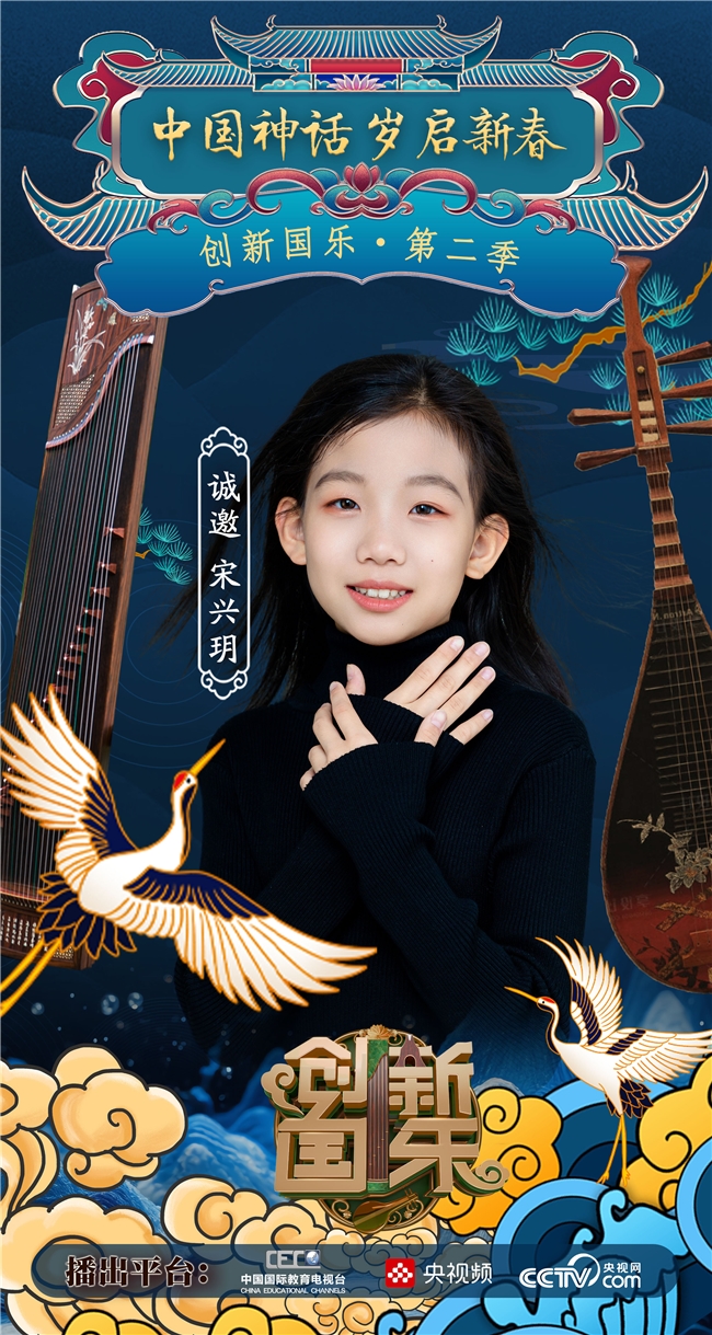 为持续推动中华优秀传统文化的创造性转化与创新性发展,打造具有时代气息的国乐精品,创新国乐第二季“中国神话 岁启新春”大型原创国乐盛典2026年2月8日在北京首钢园隆重启幕!在此,我们特别向学员宋兴玥发出正式演出邀请,期待她以更加成熟的技艺与表现力,与我们共同演绎华夏神话的壮丽诗篇。