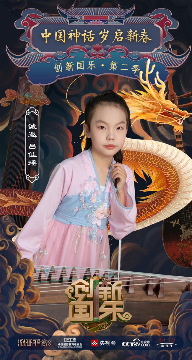 为持续推动中华优秀传统文化的创造性转化与创新性发展,打造具有时代气息的国乐精品,创新国乐第二季“中国神话 岁启新春”大型原创国乐盛典2026年2月8日在北京首钢园隆重启幕!在此,我们特别向学员吕佳瑶发出正式演出邀请,期待她以更加成熟的技艺与表现力,与我们共同演绎华夏神话的壮丽诗篇。