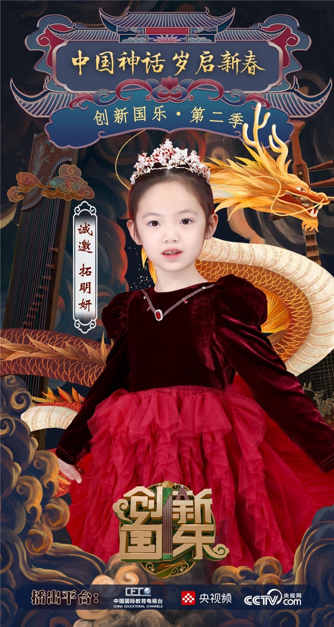 为持续推动中华优秀传统文化的创造性转化与创新性发展,打造具有时代气息的国乐精品,创新国乐第二季“中国神话 岁启新春”大型原创国乐盛典2026年2月8日在北京首钢园隆重启幕!在此,我们特别向学员拓明妍发出正式演出邀请,期待她以更加成熟的技艺与表现力,与我们共同演绎华夏神话的壮丽诗篇。