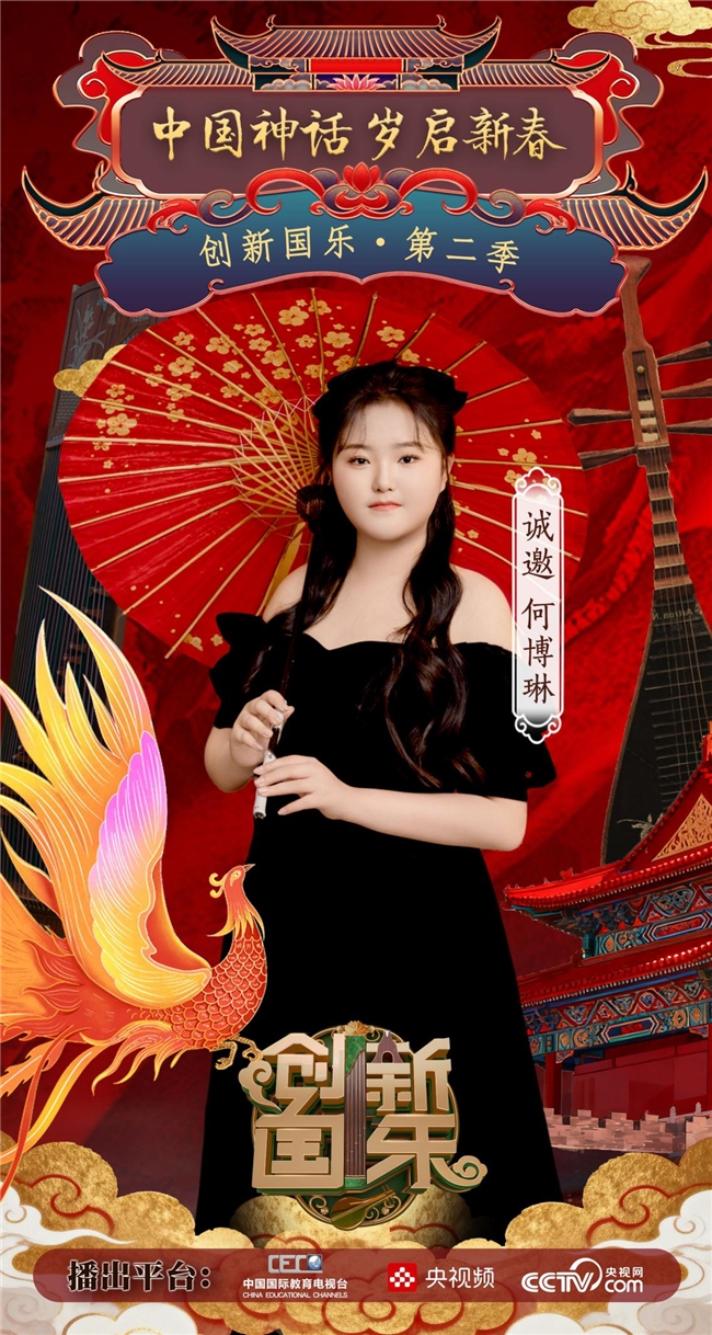 为持续推动中华优秀传统文化的创造性转化与创新性发展,打造具有时代气息的国乐精品,创新国乐第二季“中国神话 岁启新春”大型原创国乐盛典2026年2月8日在北京首钢园隆重启幕!在此,我们特别向学员何博琳发出正式演出邀请,期待她以更加成熟的技艺与表现力,与我们共同演绎华夏神话的壮丽诗篇。