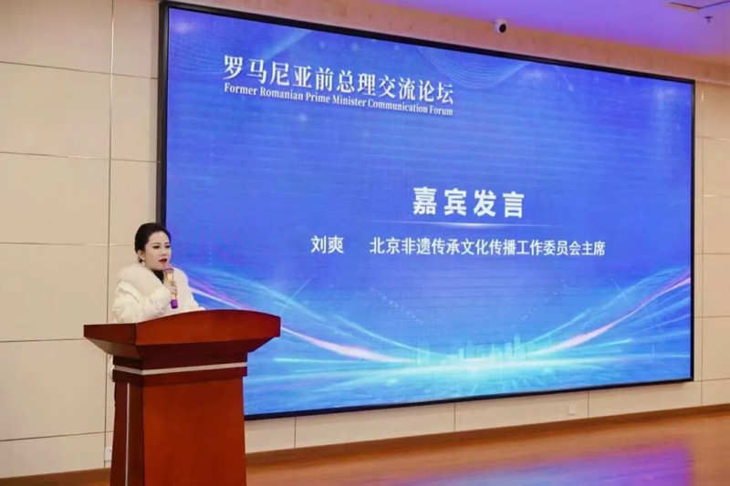 2025年12月5日,罗马尼亚前总理交流论坛在北京举办,罗马尼亚前总理彼得·罗曼(Petre Roman)出席开幕式并致辞。北京非遗传承文化传播工作委员会主席刘爽作为特邀嘉宾,以“让世界看见东方之美——中国非遗的当代实践与国际对话”为题发表主旨演讲。