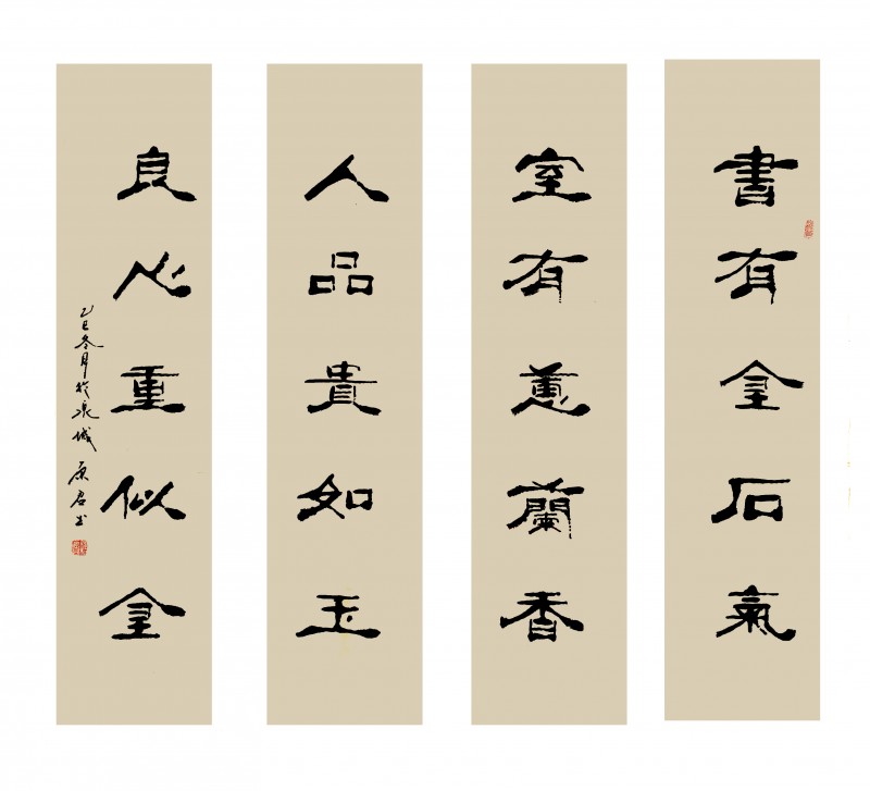 马子经教授河南安阳人,早年毕业于中央美术学院西洋画系,精通油画,同时在书法方面亦有很高的造诣,他十分看中魏原君身上的艺术潜质,不仅倾囊相授技法,更引导他跳出唐楷的框架,转向隶篆的研习。三年系统正规的受教经历对他的艺术成长产生了深远影响,使他在掌握传统技法的同时,艺术视野大为开阔,并开始思考如何在继承中创新。