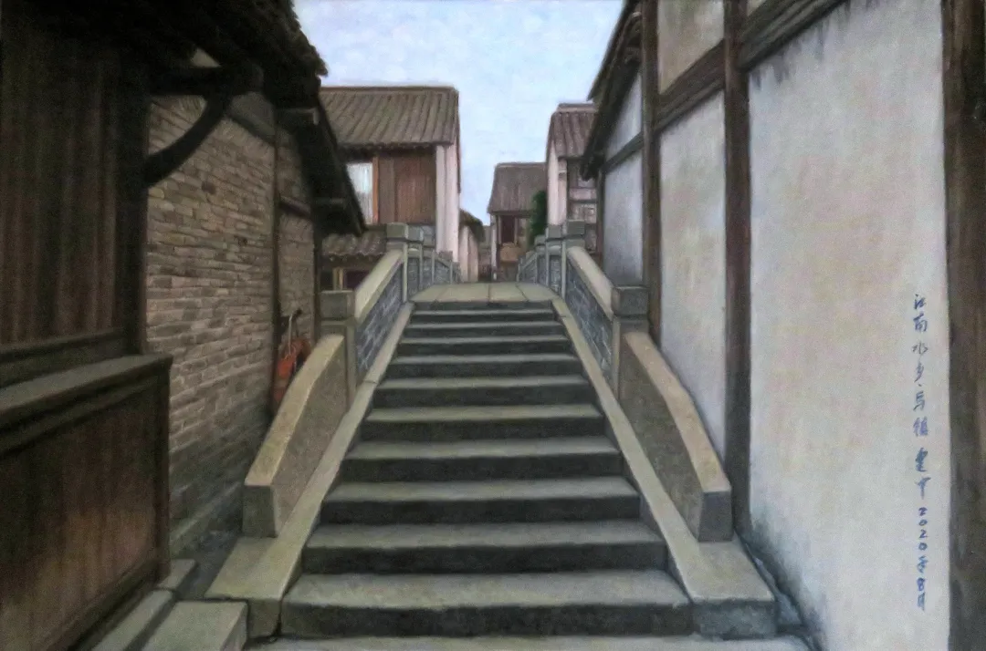 •2022年-油画《江南水乡·乌镇风景三》入选“望-当代中国艺术展”在意大利罗马文书院宫-达芬奇博物馆展出。