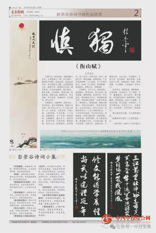 如今,年近古稀的彭崇谷依然勤奋倍加、笔耕不辍。他每天四五点起床,不是创作诗、联、赋,便是著书撰文。正如他在一首言志诗中所写:“秃笔万杆枯墨海,不登佳境誓无回。”