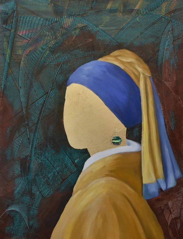 带螺钿耳环的女孩 60x80cm 2022年 金箔、布面油画