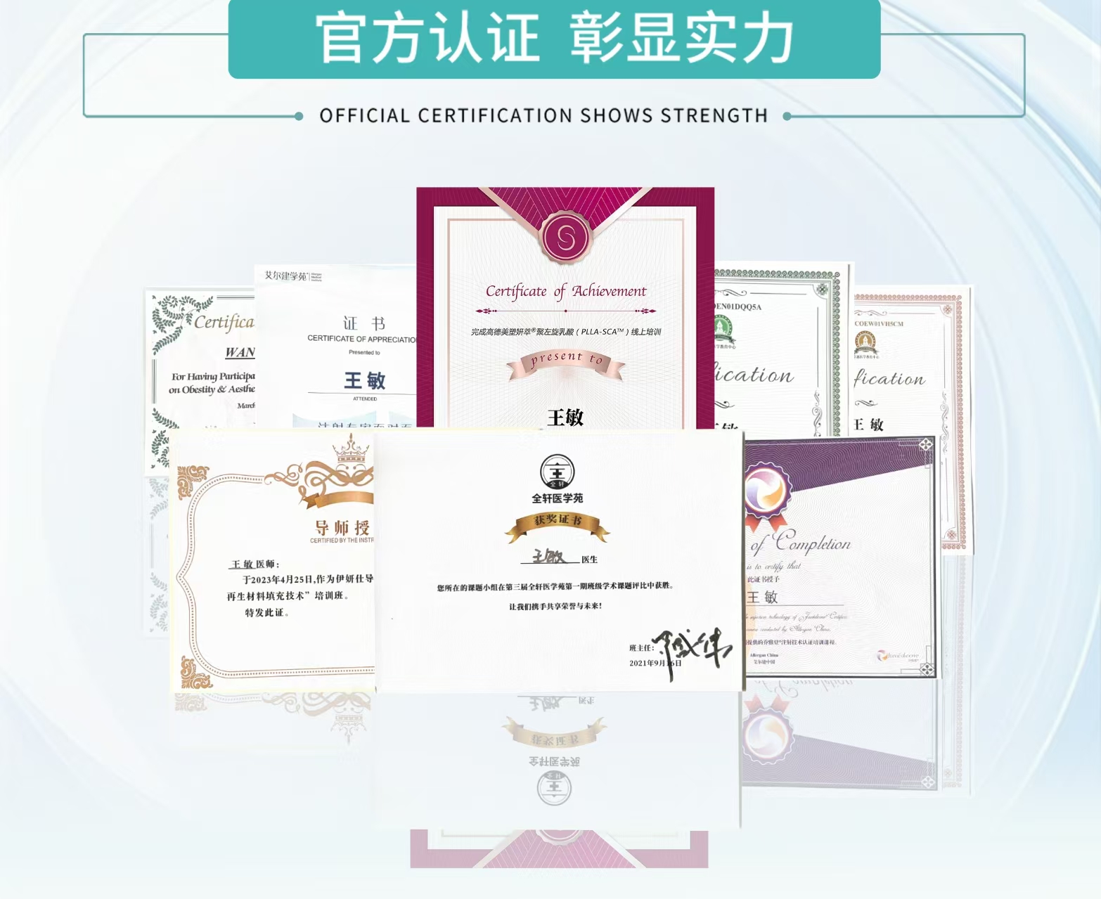 王敏院长深耕医美微调领域多年,是业内少有的解剖理论与实操技能双全能的资深医师。她深知,面部微调绝非简单的填充修饰,而是一场基于人体解剖结构的精准艺术创作。从面部骨骼分布、肌肉走向,到血管神经分布、皮肤层次深浅,王敏院长烂熟于心,每一次操作都严格遵循解剖原理,精准把控注射点位、层次、剂量,杜绝盲目操作、杜绝过量填充,从根源上规避假面感、僵硬感、凹凸不平等常见医美弊端,让每一处微调都贴合原生面部结构,安全又自然。