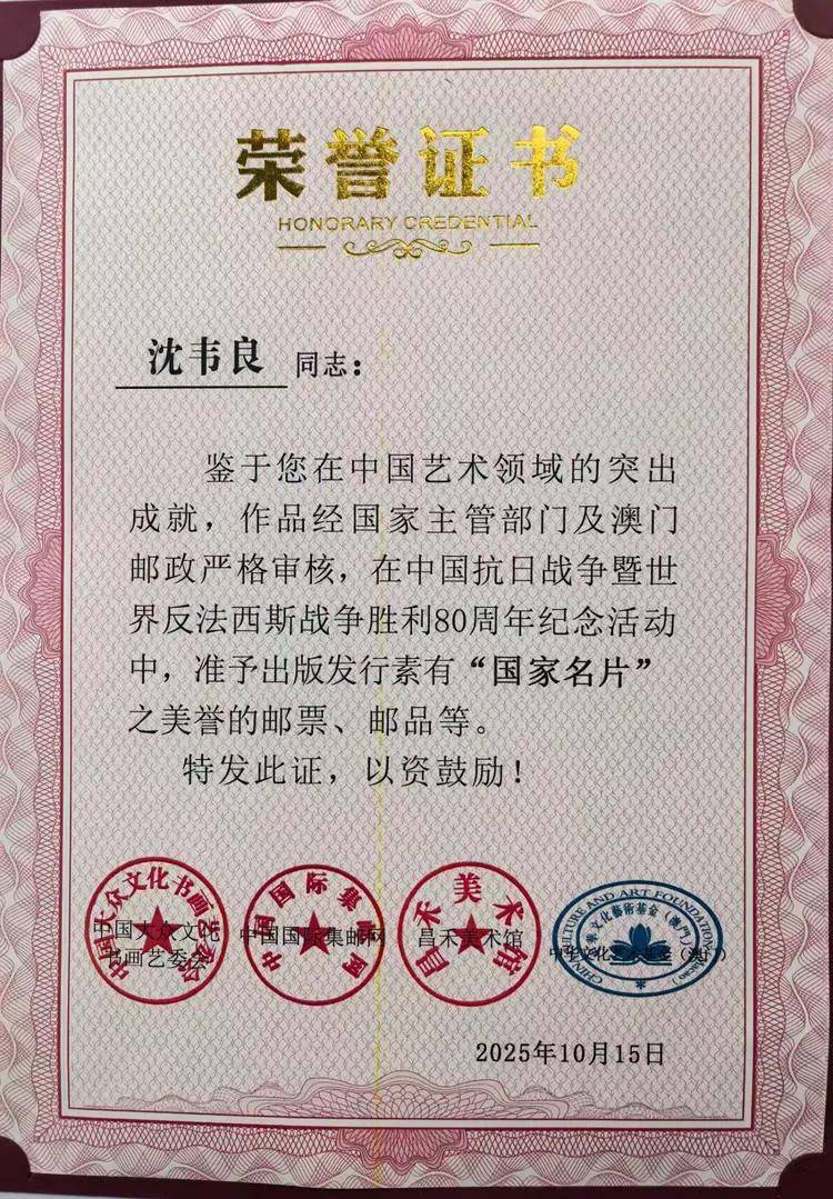 国家一级美术师、国家一级书法师中国社会学会会员、