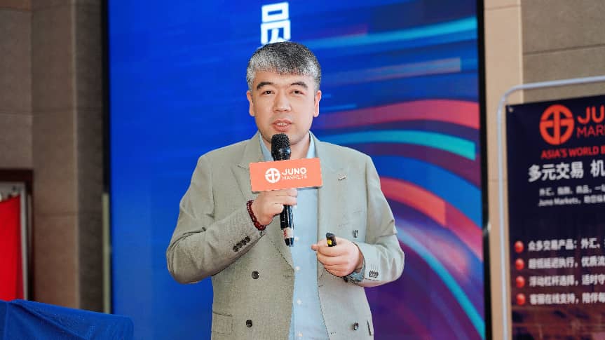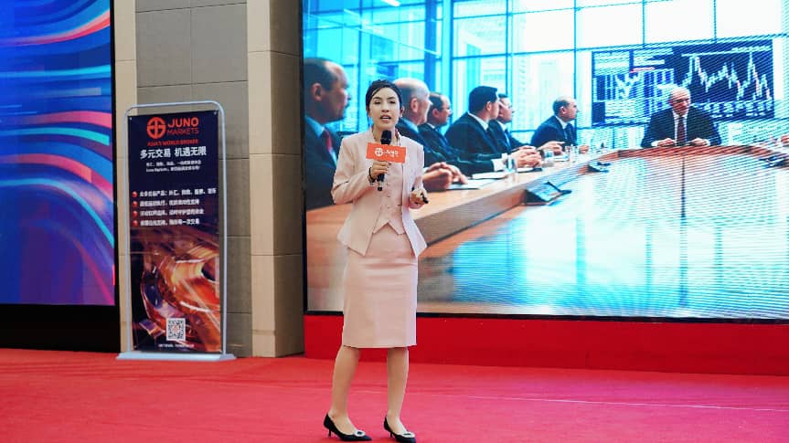 峰会启幕,Juno Markets 品牌代表率先登台,面向到场的近百位交易员及爱好者,全景式呈现了平台的核心业务架构、全球服务体系与未来战略规划。