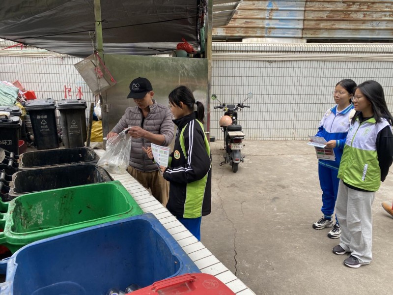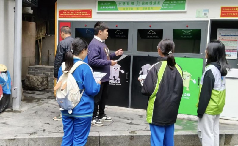 培训现场,工作人员让学生近距离体验站桶值守人员的分类指导工作,讲授垃圾分类投放的理念和方法,介绍了厨余垃圾、其他垃圾、可回收物、有害垃圾的分类投放误区。期间通过手把手、面对面的教学,让学生们积极主动引导居民进行生活垃圾正确分类投放,推进文明习惯的养成。