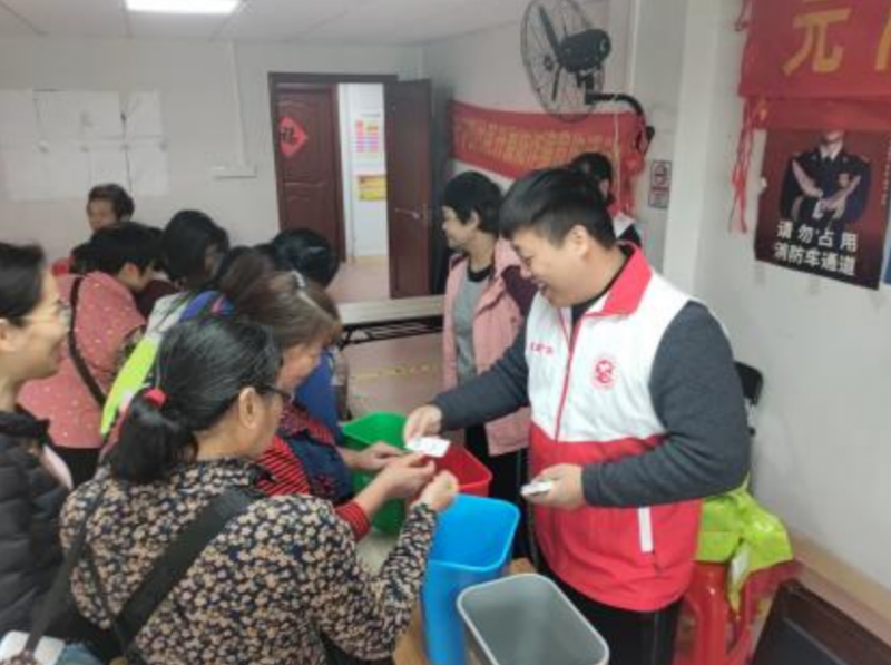 活动现场,四个不同颜色的垃圾桶模型格外引人注目,它们分别代表可回收物、有害垃圾、厨余垃圾和其他垃圾。居民们兴致勃勃地参与到模拟投放游戏中,他们先到志愿者处抽取代表具体垃圾的卡片,然后依次上前将卡片投入对应的垃圾桶中。