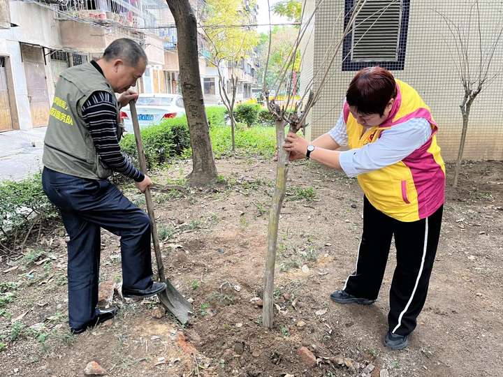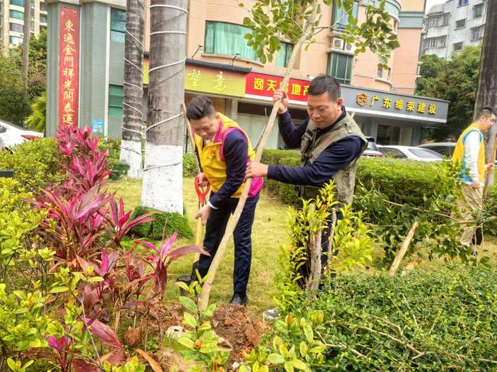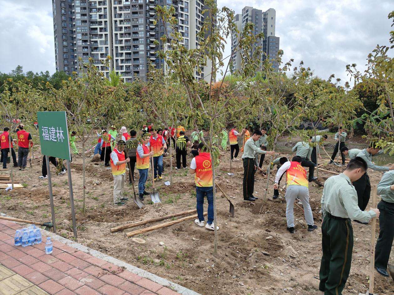 各社区普通民兵连、退役军人服务站结合社区实际,分别组织普通民兵、退役军人志愿者开展义务植树活动,为绿美石岐添绿。