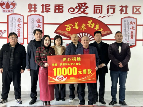 2025年3月17日,一场由民革蚌埠市建工支部开展的“博爱·同行”爱心捐赠活动在蚌埠市禹会区张公山街道禹爱同行爱心食堂举行。市政协副主席、民革蚌埠市委会主委周景飞,市委会专职副主委周继红出席活动。