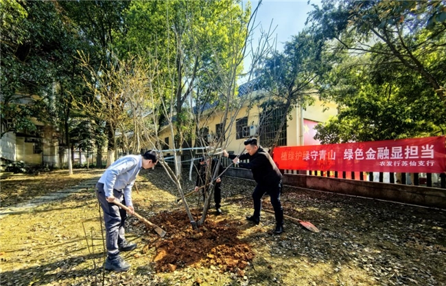 春和景明,万物吐新。近日,农发行苏仙区支行组织全体党员开展“植绿护绿守青山 绿色金融显担当”义务植树主题党日活动,以实际行动为生态文明建设贡献金融力量。