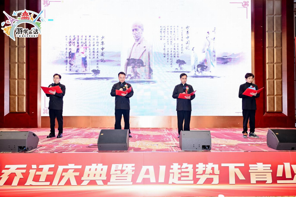 活动在庄严的国歌声中正式拉开帷幕,游学画话外景主持小凯热情开场,向到场的各位领导、嘉宾、教育界同仁及媒体朋友们致以诚挚欢迎与衷心感谢。他强调了艺起梦·游学画话坚守立德树人教育初心,此次乔迁新址不仅是空间的转换,更是迈向新征程、深入探索AI教育融合的重要一步。