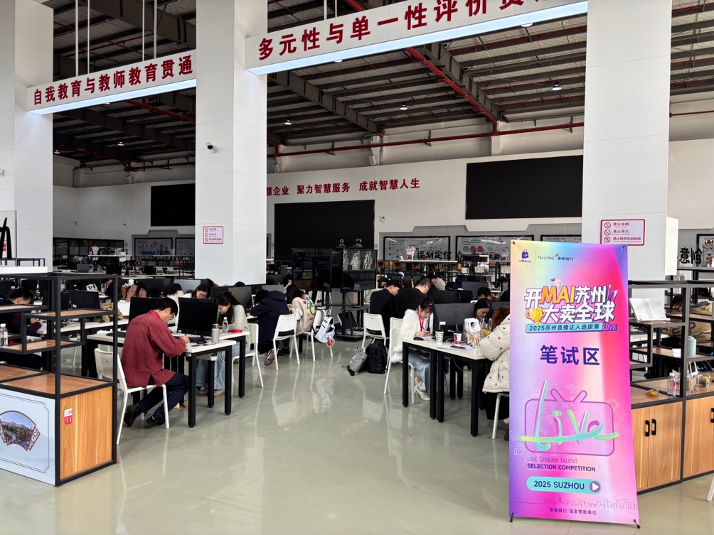 比赛遵循《互联网营销师国家职业技能标准》技术要求命题,通过理论考试和技能操作相结合的方式,全面检验选手们的专业素养与实战能力。选拔赛围绕“苏州制造、跨境出海、本地生活、农特非遗老字号”等四个主题进行直播技能演示。总决赛采用“理论考核+直播实战”,校企直播达人同台竞技,共展直播技能人才风采,洋溢着浓郁的直播电商氛围。