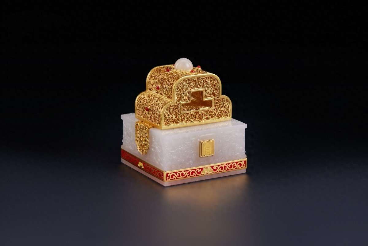 “百年宝玺”将千年花丝镶嵌工艺与珍贵和田玉完美融合,工艺传承千年,尽显皇家顶级工艺的典雅与尊贵。其设计灵感源自故宫文化经典元素,造型独特,玺钮的线条流畅又充满古韵。宝玺以方正和田玉为玺基,完美体现“天圆地方”传统理念,玺基正方的故宫“金字宫标”,彰显故宫官方权威。