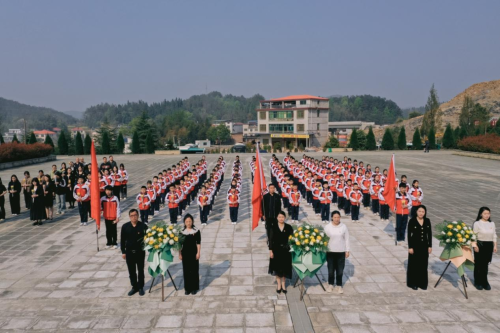 在庄严的国歌声中,全体师生整齐列队,肃立在烈士纪念碑前,向革命先烈默哀致敬。接着,少先队员们齐声高唱《中国少年先锋队队歌》,用嘹亮的歌声表达继承先烈遗志、担当时代使命的坚定信念。随后,全体师生向烈士敬献花篮、鲜花,寄托对革命先烈的无限哀思。