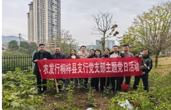 春和景明万物苏,植树添绿正当时。近日,在植树节来临之际,农发行贵州分行桐梓县支行党支部创新活动形式,组织全体党员干部开展了一场别开生面的义务植树活动,用实际行动践行“绿水青山就是金山银山”的理念。
