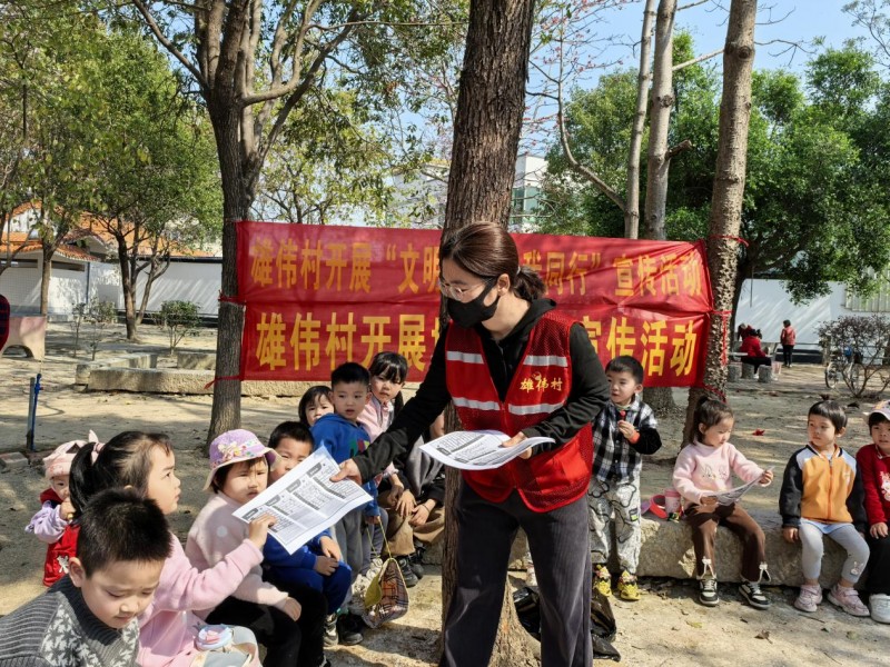 为积极践行绿色环保理念,创设良好的学习成长环境,引导孩子们争做垃圾分类小小践行者,把幼儿园垃圾分类新风尚演绎得更加精彩。2025年4月2日上午,钟落潭镇雄伟村文佳幼儿园老师联合志愿者开展以“垃圾分类,从小做起”为主题的垃圾分类宣传活动。活动共50人参加,宣传单50张。