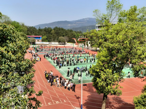 4月3日,湖南省隆回县高平镇颜公中学成功举办了“校长喊你来跑步”大课间体育活动,在全校师生的热情参与和共同努力下,活动取得了圆满成功,达到了预期效果。 活动当天,阳光明媚,微风不燥,为跑步活动提供了绝佳的天气条件。同学们在班主任和体育老师的带领下,整齐地排列在操场指定位置,个个精神抖擞,跃跃欲试。校长亲自领跑,一声令下,全体师生迈着整齐的步伐,高喊着激昂的口号,开启了这场充满活力的跑步征程。 在跑步过程中,同学们严格遵守秩序,保持着适当的间距和速度,展现出了良好的纪律性和团队协作精神。老师们也全程陪伴,一边鼓励学生,一边关注学生的身体状况,确保每一位学生都能安全完成跑步。沿途,还有专门的保障人员随时待命,为可能出现的突发情况做好充分准备,整个操场充满了青春的活力和积极向上的氛围。