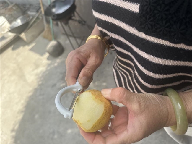 在发放过程中,双溪村的网格员们采用"三同步"工作法:线上通过网格微信群推送削皮刀,线下结合入户走访同步开展削皮刀的发放。村民李阿姨用新削皮刀削完梨子递给小王,热情的邀请小王吃梨,笑道:"这刀削得不仅是果蔬皮,更是咱们心里的隔阂皮啊!"短短两周,削皮刀的发放使网格知晓率提升。
