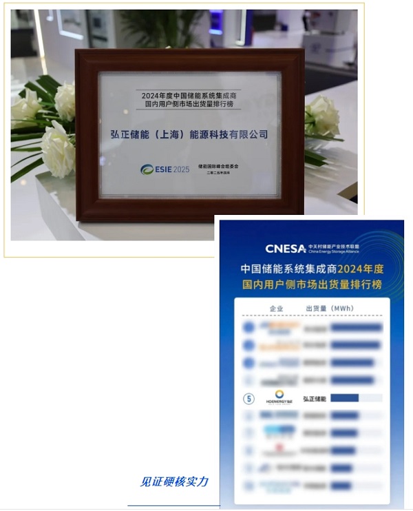 同时,在权威调研机构CNESA发布的2024年度储能系列榜单中,弘正储能入选国内用户侧储能系统出货量TOP5,彰显了公司从技术研发到规模商用的全链条竞争力。
