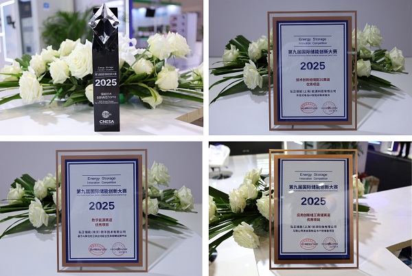在展会同期举办的国际储能创新大赛颁奖盛典上,弘正储能自主研发的“外挂式AI电池智能诊断修复仪”荣获2025储能技术创新典范TOP10奖项。此外,弘正储能自研“基于AI算法的工商业储能全生命周期运营平台”和“马鞍山粤美金属制品用户侧储能项目 ”也分别入选储能3S/数字能源赛道优秀项目及工商储赛道优秀项目。