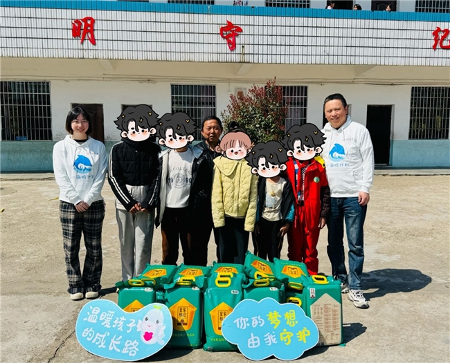 在简朴而温馨的捐赠仪式上,志愿者们为五名受助儿童送上捐赠的大米。当看到曾带他们参加分公司夏令营的志愿者时,小玲和小晗兴奋地跑上前拥抱,叽叽喳喳地分享着上学期取得的优异成绩。校长欣慰地表示:“这些孩子特别珍惜学习机会,去年期末考试有三人进入全镇前十名,这份坚韧与志愿者长期的心理关怀密不可分。”