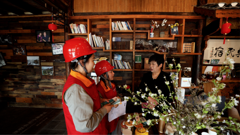 服务走访组聚焦景区民宿用电安全,开展“电力诊所”上门服务活动。青年志愿者们先后走访核心景区内的8家民宿,就近期用电情况、后期用电需求等问题与民宿老板展开深入交流,并对民宿的供用电线路设备进行检测,针对存在的隐患问题及时出具隐患整改通知单,并建立“一户一档”服务台账,提供24小时用电咨询的服务,贴心护航民宿行业发展。